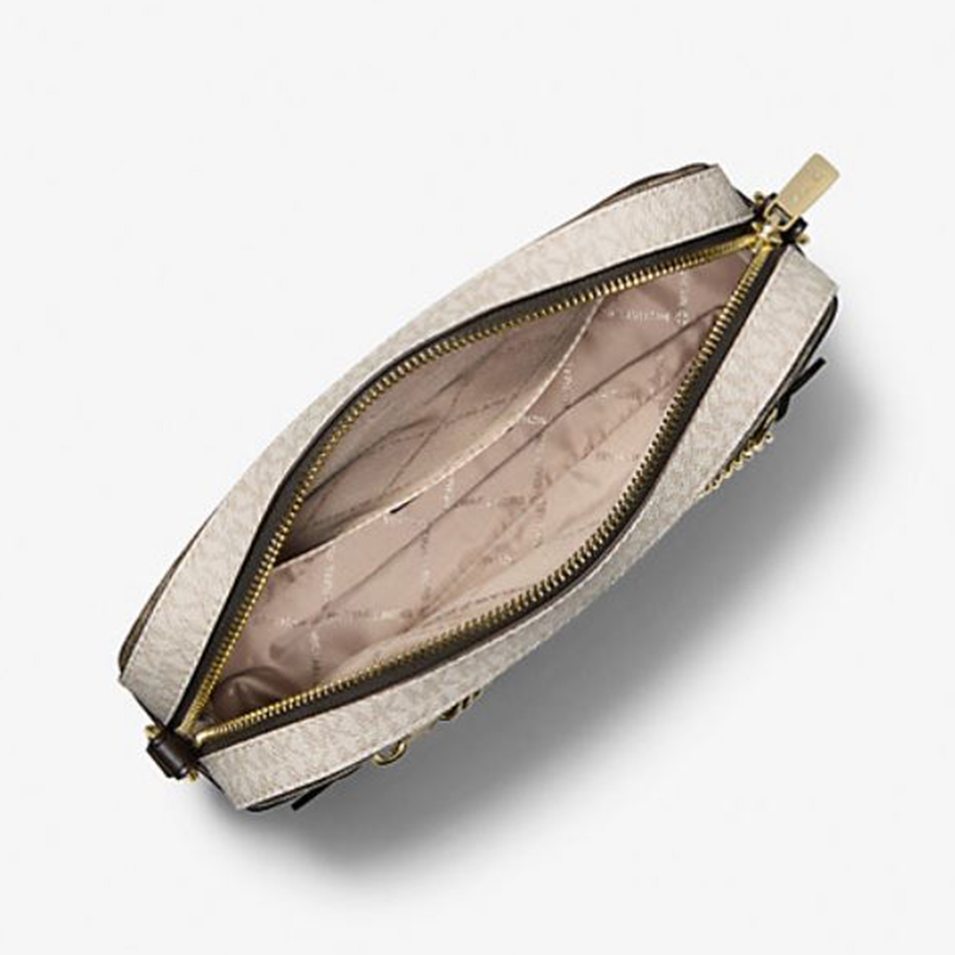 Michael Kors Jet Set Large Metallic Signature Logo Crossbody Bag Brown 35F5GTTC9