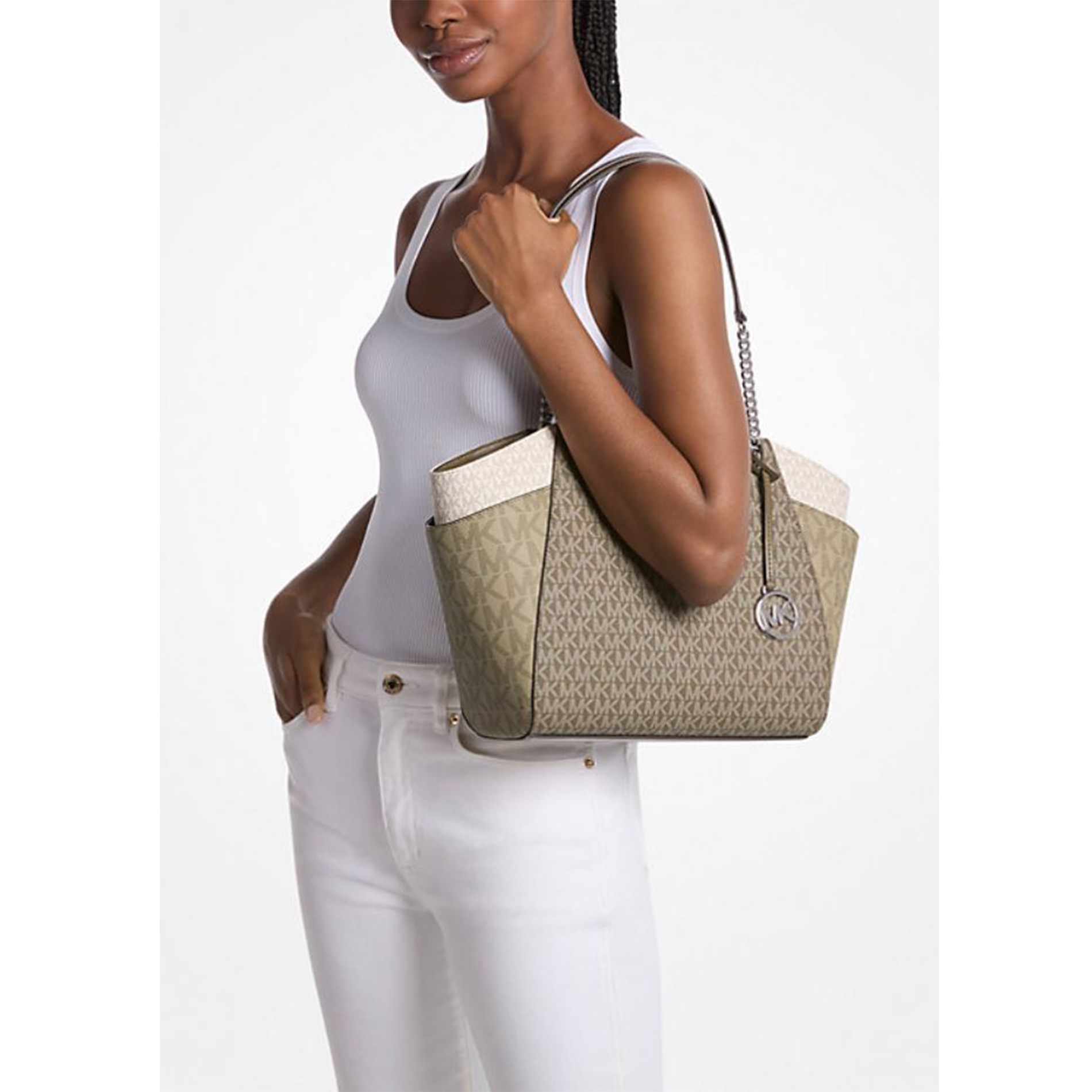 Michael Kors Lady Large MK Signature Bag Handbag Purse Tote Shoulder Olive Multi