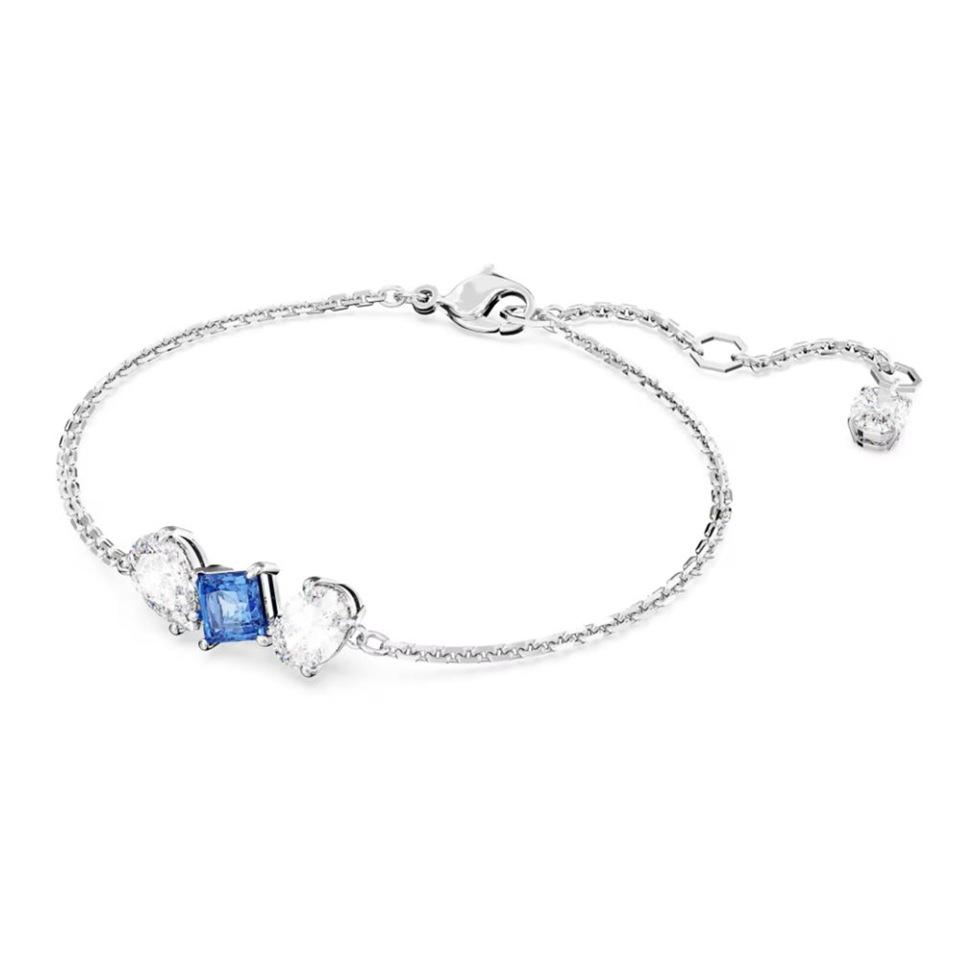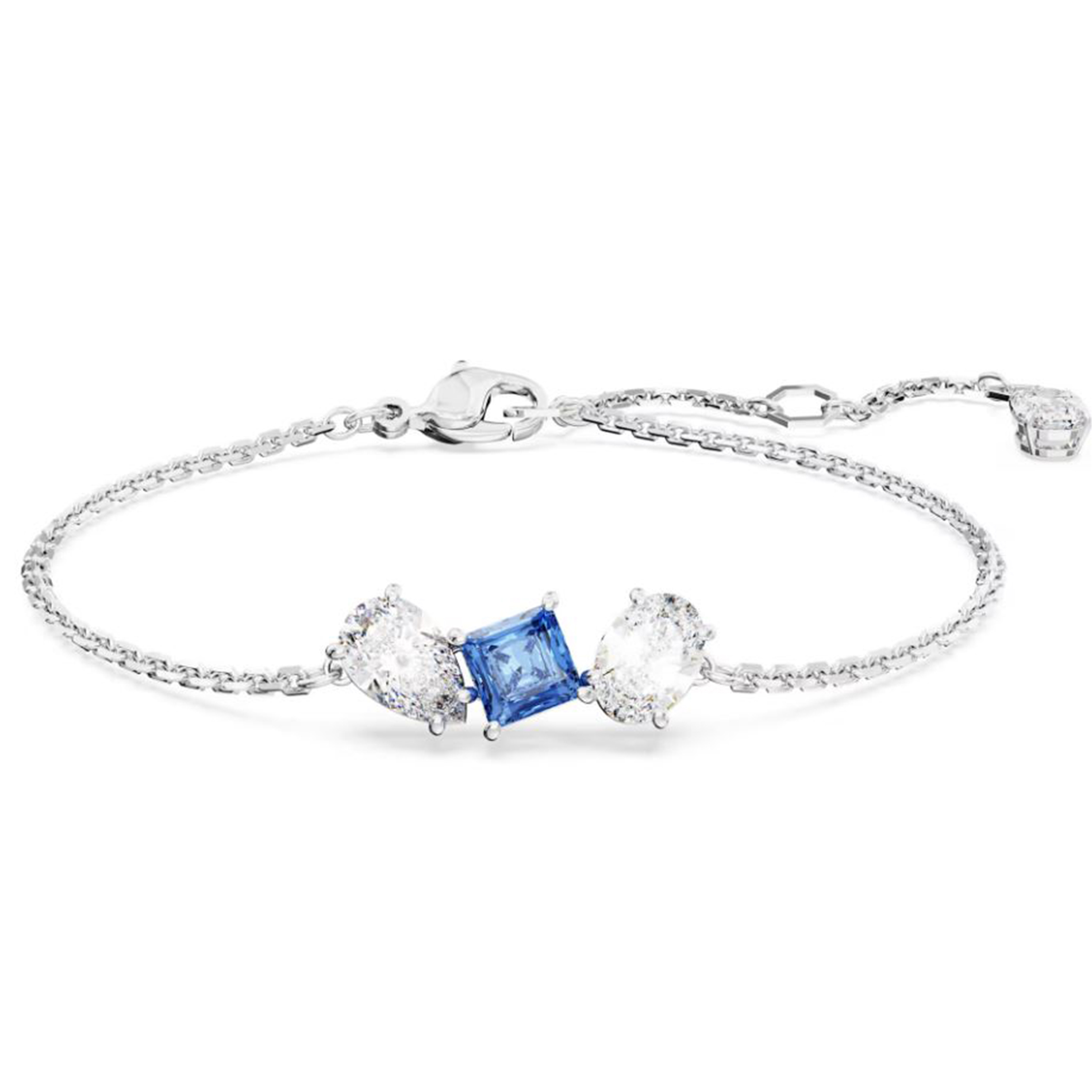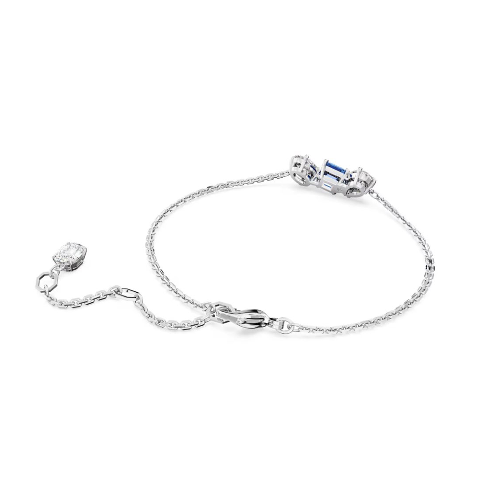 Mesmera Bracelet Rhodium-Plated Metal & Blue and White Crystals, Length 15.5 to