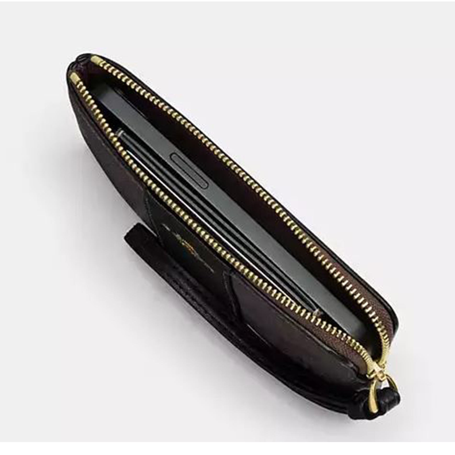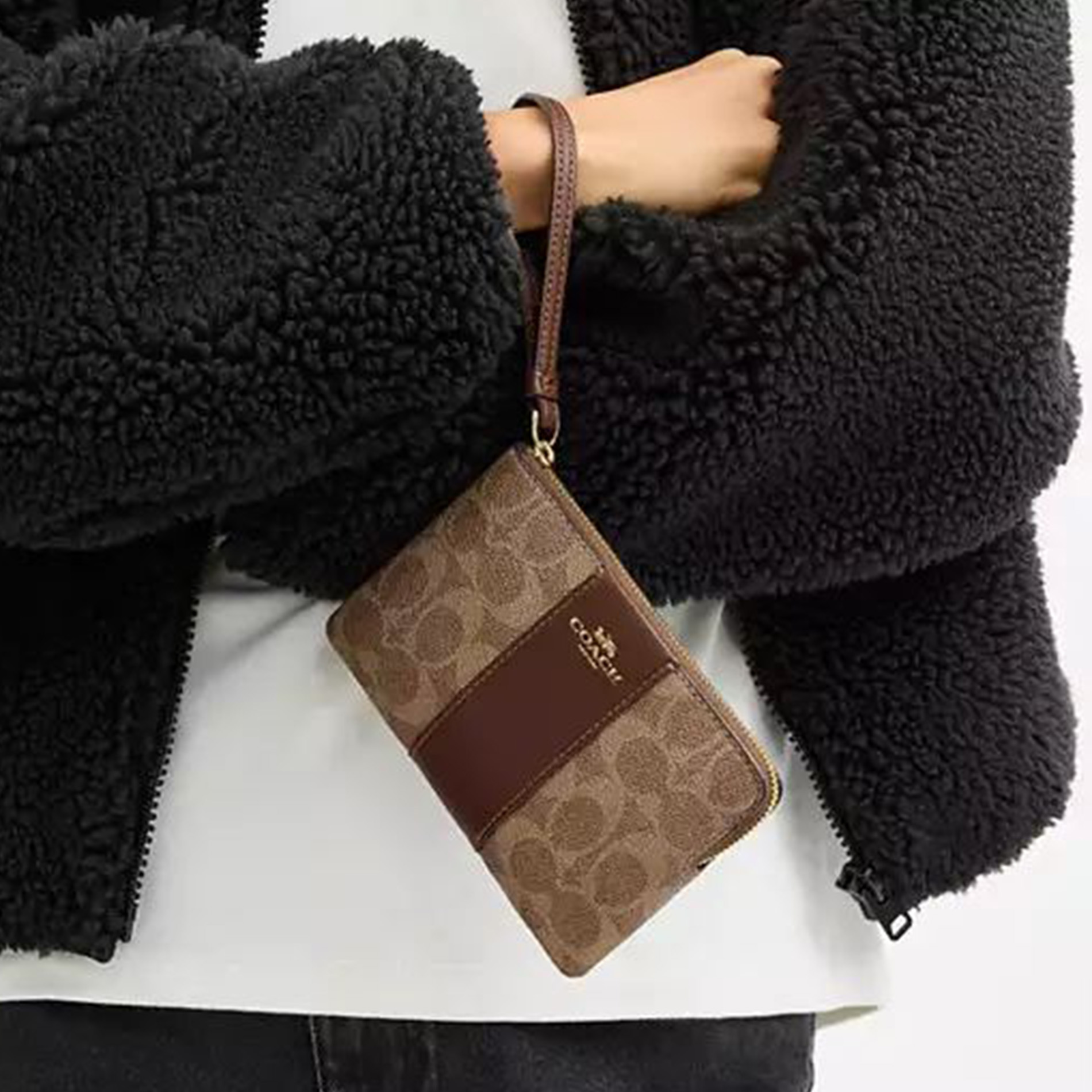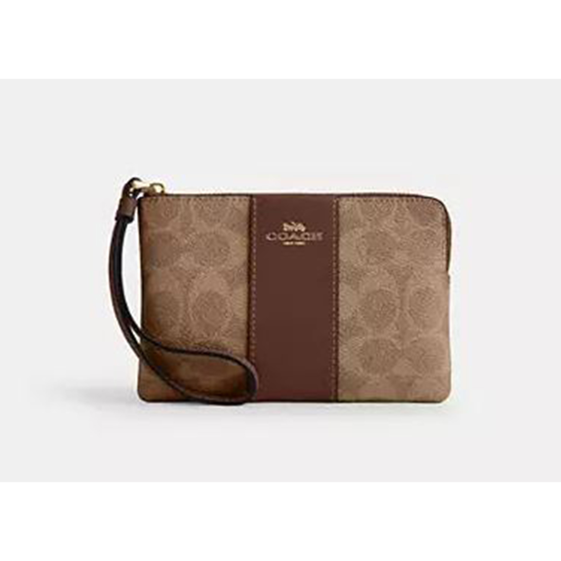 Coach Corner Zip Wristlet In Signature Canvas With Stripe (Brown) CW854IMXHE